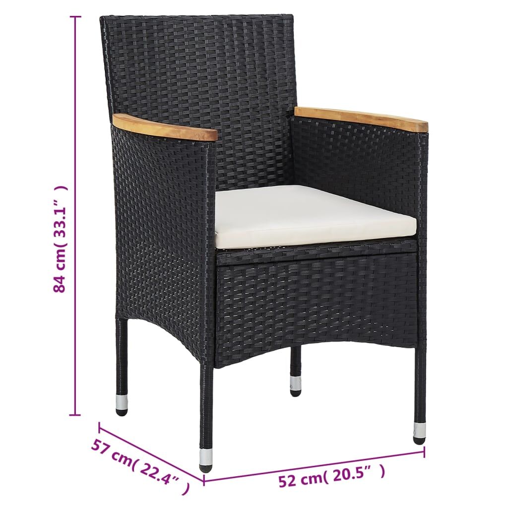 Enjoy a nice meal or afternoon tea in your outdoor space with this garden dining set! Featuring an elegant design, it will become the focal point of your garden and patio! Premium material: Sturdy steel frames wrapped with weather resistant hand woven PE rattan, this outdoor dining set is rust and mildew resistant, which can provide years of quality relaxation.Stable and strong structure: The steel frames ensure sturdiness and stability.Comfortable chairs: Designed with curved backrest and armrest, the garden armchair has a more ergonomic shape for maximum comfort. Cushions are included for added support and the zipped cover is removable for easy washing. Note:In order to extend the life of your outdoor furniture, we recommend you to protect it with a waterproof cover.