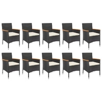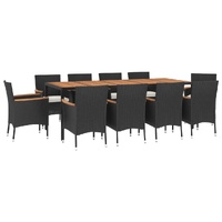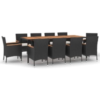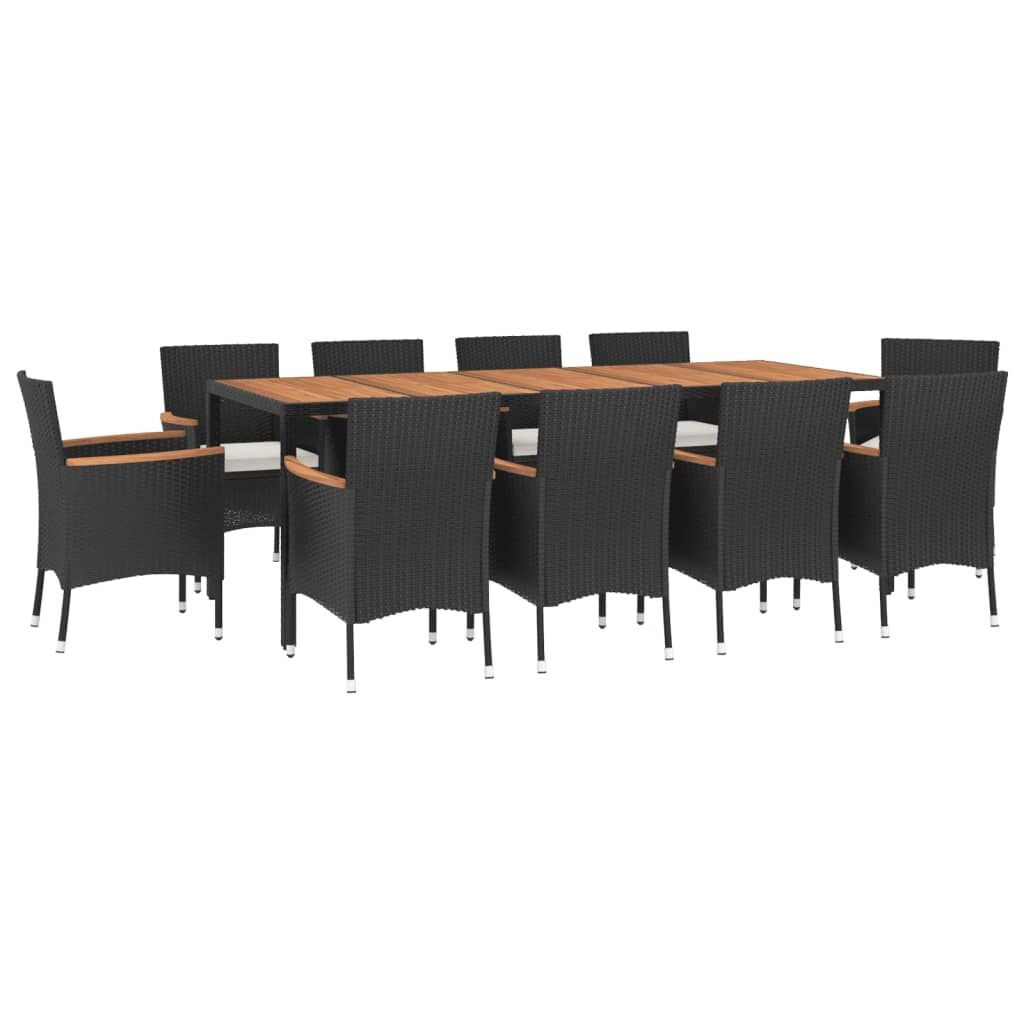 This stylish garden dining set provides you with a leisurely and comfortable time with your family and friends. Weather-resistant material: PE rattan, also known as poly rattan, is weather resistant and easy to clean. It remains beautiful on the outside for a long period of time. It offers great quality, convenience and an aesthetic look. Solid acacia wood: Solid acacia wood is a beautiful natural material. Acacia wood is a tropical hardwood, which is dense, sturdy, and durable.Sturdy and stable frame: The powder-coated steel frame of the dining set ensures sturdiness and stability. Comfortable seat experience: The thickly padded cushions of the dining chairs provide the ultimate comfort for your sitting time.Practical table: The tabletop of the dining table is made of solid acacia wood which is easy to clean with a damp cloth. Additionally, the sturdy tabletop is perfect for placing meals, drinks, and other decorative items.Flexible design: Thanks to the lightweight construction, these garden dining chairs are easy to move. Note:To make sure your outdoor furniture stays beautiful, we recommend protecting it with a waterproof cover.