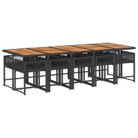 This garden dining set is a great choice for al fresco dining or just relaxing in the garden, backyard, or on the patio. Durable material: PE rattan, also known as poly rattan, is a strong, low-maintenance synthetic material that looks like natural rattan. It's lightweight, easy to clean, and commonly used for outdoor furniture due to its durability and weather-resistant properties.Compact storage: These chairs have a flap backrest that can be folded down, making it easy to store them under the table. When folded, they neatly fit under the table, forming a space-saving cube shape.Comfortable seat experience: This outdoor furniture, complete with thickly padded cushions, offers a comfortable seating experience.Removable and washable cover: These seat cushions feature removable covers for easy washing and maintenance. The cushion covers have a flap at the back for easy attachment to the backrests.Stable and easy-to-clean tabletop: This garden table has an acacia wood top that is sturdy, durable, and easy to clean with a damp cloth. Good to know:To make sure your outdoor furniture stays beautiful, we recommend protecting it with a waterproof cover.