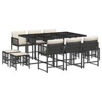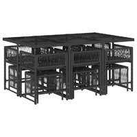 This garden dining set is a great choice for al fresco dining or just relaxing in the garden, backyard, or on the patio. Durable material: PE rattan, also known as poly rattan, is a strong, low-maintenance synthetic material that looks like natural rattan. It's lightweight, easy to clean, and commonly used for outdoor furniture due to its durability and weather-resistant properties.Compact storage: These chairs have a flap backrest that can be folded down, making it easy to store them under the table. When folded, they neatly fit under the table, forming a space-saving cube shape. Additionally, the stools can also be stored under the chairs, further maximizing space efficiency.Comfortable seat experience: This outdoor furniture, complete with thickly padded cushions, offers a comfortable seating experience.Removable and washable cover: These seat cushions feature removable covers for easy washing and maintenance. The cushion covers have a flap at the back for easy attachment to the backrests.Glass tabletop: The outdoor table's top is made from strong and durable tempered glass, making it easy to clean with a damp cloth and adding a touch of elegance to your outdoor space. Good to know:To make sure your outdoor furniture stays beautiful, we recommend protecting it with a waterproof cover.