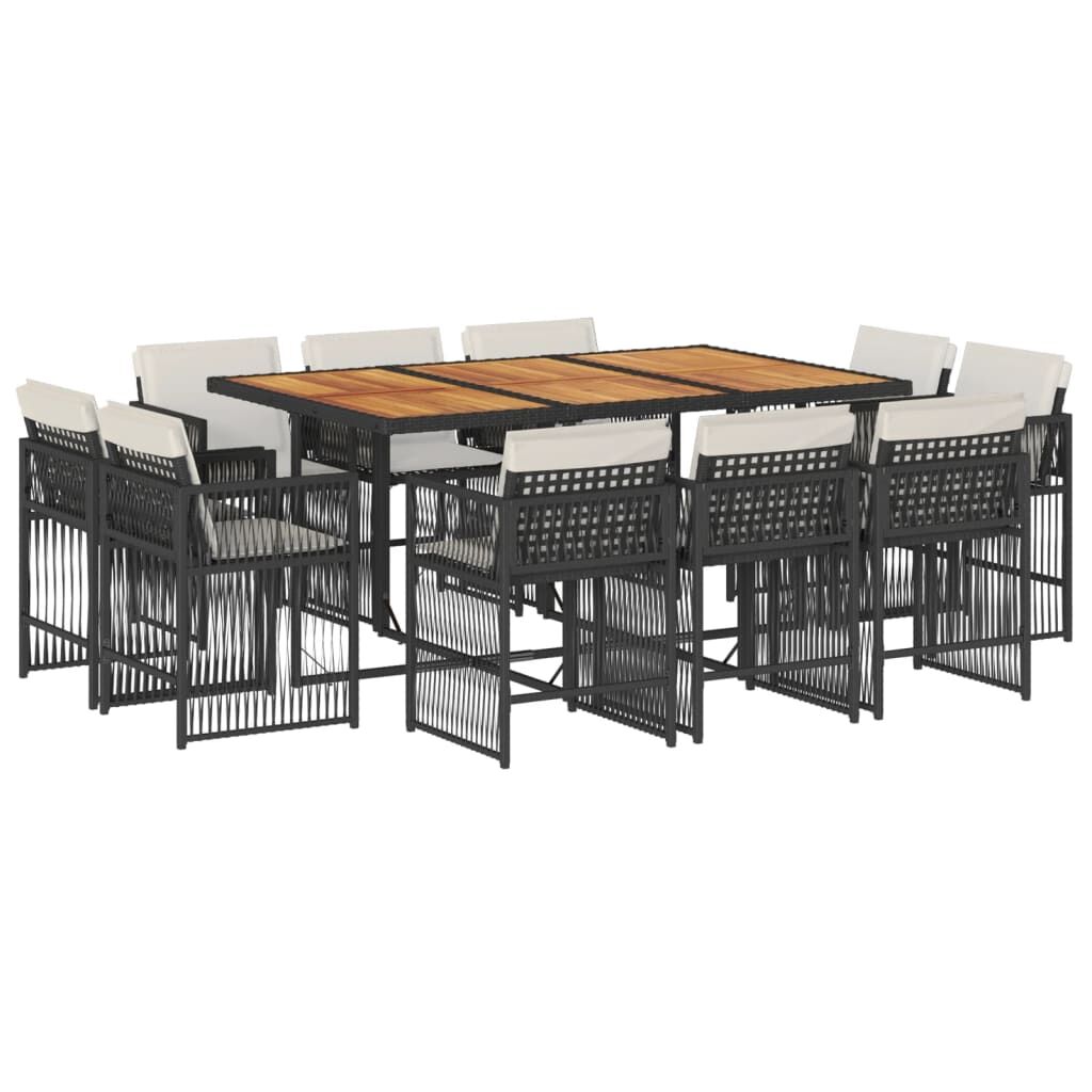 This garden dining set is a great choice for al fresco dining or just relaxing in the garden, backyard, or patio. Durable material: PE rattan, also known as poly rattan, is a strong, low-maintenance synthetic material that looks like natural rattan. It's lightweight, easy to clean, and commonly used for outdoor furniture due to its durability and weather-resistant properties.Compact storage: These chairs have a flap backrest that can be folded down, making it easy to store them under the table. When folded, they neatly fit under the table, forming a space-saving cube shape.Comfortable seat experience: This outdoor furniture, complete with thickly padded cushions, offers a comfortable seating experience.Removable and washable cover: These seat cushions feature removable covers for easy washing and maintenance. The cushion covers have a flap at the back for easy attachment to the backrests.Stable and easy-to-clean tabletop: This garden table has an acacia wood top that is sturdy, durable, and easy to clean with a damp cloth. Good to know:To make sure your outdoor furniture stays beautiful, we recommend protecting it with a waterproof cover.