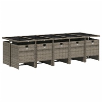 This garden dining set is a great choice for al fresco dining or just relaxing in the garden, backyard, or on the patio. Durable material: PE rattan, also known as poly rattan, is a strong, low-maintenance synthetic material that looks like natural rattan. It's lightweight, easy to clean, and commonly used for outdoor furniture due to its durability and weather-resistant properties.Compact storage: These chairs have a flap backrest that can be folded down, making it easy to store them under the table. When folded, they neatly fit under the table, forming a space-saving cube shape. Comfortable seat experience: This outdoor furniture, complete with thickly padded cushions, offers a comfortable seating experience.Removable and washable cover: These seat cushions feature removable covers for easy washing and maintenance.Glass tabletop: The outdoor table's top is made from strong and durable tempered glass, making it easy to clean with a damp cloth and adding a touch of elegance to your outdoor space. Good to know: To make sure your outdoor furniture stays beautiful, we recommend protecting it with a waterproof cover.