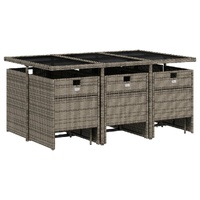 This garden dining set is a great choice for al fresco dining or just relaxing in the garden, backyard, or on the patio. Durable material: PE rattan, also known as poly rattan, is a strong, low-maintenance synthetic material that looks like natural rattan. It's lightweight, easy to clean, and commonly used for outdoor furniture due to its durability and weather-resistant properties.Compact storage: These chairs have a flap backrest that can be folded down, making it easy to store them under the table. When folded, they neatly fit under the table, forming a space-saving cube shape. Additionally, the stools can also be stored under the chairs, further maximising space efficiency. Comfortable seat experience: This outdoor furniture, complete with thickly padded cushions, offers a comfortable seating experience.Removable and washable cover: These seat cushions feature removable covers for easy washing and maintenance.Glass tabletop: The outdoor table's top is made from strong and durable tempered glass, making it easy to clean with a damp cloth and adding a touch of elegance to your outdoor space. Good to know: To make sure your outdoor furniture stays beautiful, we recommend protecting it with a waterproof cover.