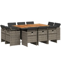This garden dining set is a great choice for al fresco dining or just relaxing in the garden, backyard, or on the patio. Durable material: PE rattan, also known as poly rattan, is a strong, low-maintenance synthetic material that looks like natural rattan. It's lightweight, easy to clean, and commonly used for outdoor furniture due to its durability and weather-resistant properties.Compact storage: These chairs have a flap backrest that can be folded down, making it easy to store them under the table. When folded, they neatly fit under the table, forming a space-saving cube shape. Comfortable seat experience: This outdoor furniture, complete with thickly padded cushions, offers a comfortable seating experience.Removable and washable cover: These seat cushions feature removable covers for easy washing and maintenance.Stable and easy-to-clean tabletop: This garden table has an acacia wood top that is sturdy, durable, and easy to clean with a damp cloth. Good to know: To make sure your outdoor furniture stays beautiful, we recommend protecting it with a waterproof cover.