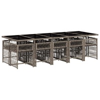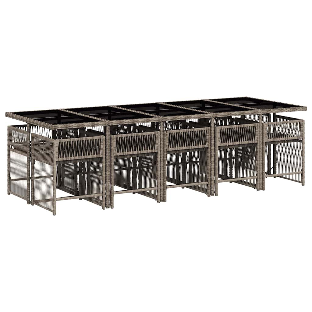 This garden dining set is a great choice for al fresco dining or just relaxing in the garden, backyard, or patio. Durable material: PE rattan, also known as poly rattan, is a strong, low-maintenance synthetic material that looks like natural rattan. It's lightweight, easy to clean, and commonly used for outdoor furniture due to its durability and weather-resistant properties.Compact storage: These chairs have a flap backrest that can be folded down, making it easy to store them under the table. When folded, they neatly fit under the table, forming a space-saving cube shape.Comfortable seat experience: This outdoor furniture, complete with thickly padded cushions, offers a comfortable seating experience.Removable and washable cover: These seat cushions feature removable covers for easy washing and maintenance. The cushion covers have a flap at the back for easy attachment to the backrests.Glass tabletop: The outdoor table's top is made from strong and durable tempered glass, making it easy to clean with a damp cloth and adding a touch of elegance to your outdoor space. Good to know:To make sure your outdoor furniture stays beautiful, we recommend protecting it with a waterproof cover.
