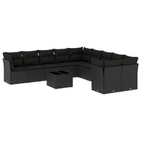 11 Piece Garden Sofa Set with Cushions Black Poly Rattan