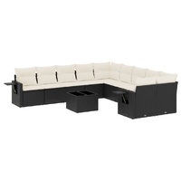 11 Piece Garden Sofa Set with Cushions Black Poly Rattan