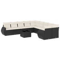 11 Piece Garden Sofa Set with Cushions Black Poly Rattan