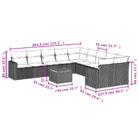 $1,062.89This garden sofa set is the perfect addition to your backyard, terrace, or patio, providing a comfortable and inviting space for chatting with family and friends or simply relaxing and enjoying the outdoors. Durable material: PE rattan, also known as poly rattan, is a strong, low-maintenance synthetic material that looks like natural rattan. It's lightweight, easy to clean, and commonly used for outdoor furniture due to its durability and weather-resistant properties.Stable and easy-to-clean tabletop: This garden table has an acacia wood top that is sturdy, durable, and easy to clean with a damp cloth.Comfortable seat experience: This outdoor furniture, complete with thickly padded cushions, offers a comfortable seating experience.Removable and washable cover: These seat cushions feature removable covers for easy washing and maintenance.Modular design: This outdoor furniture set has a modular design, making it completely flexible and easy to move around, so you can create a customised outdoor furniture arrangement. Good to know:To make sure your outdoor furniture stays beautiful, we recommend protecting it with a waterproof cover.