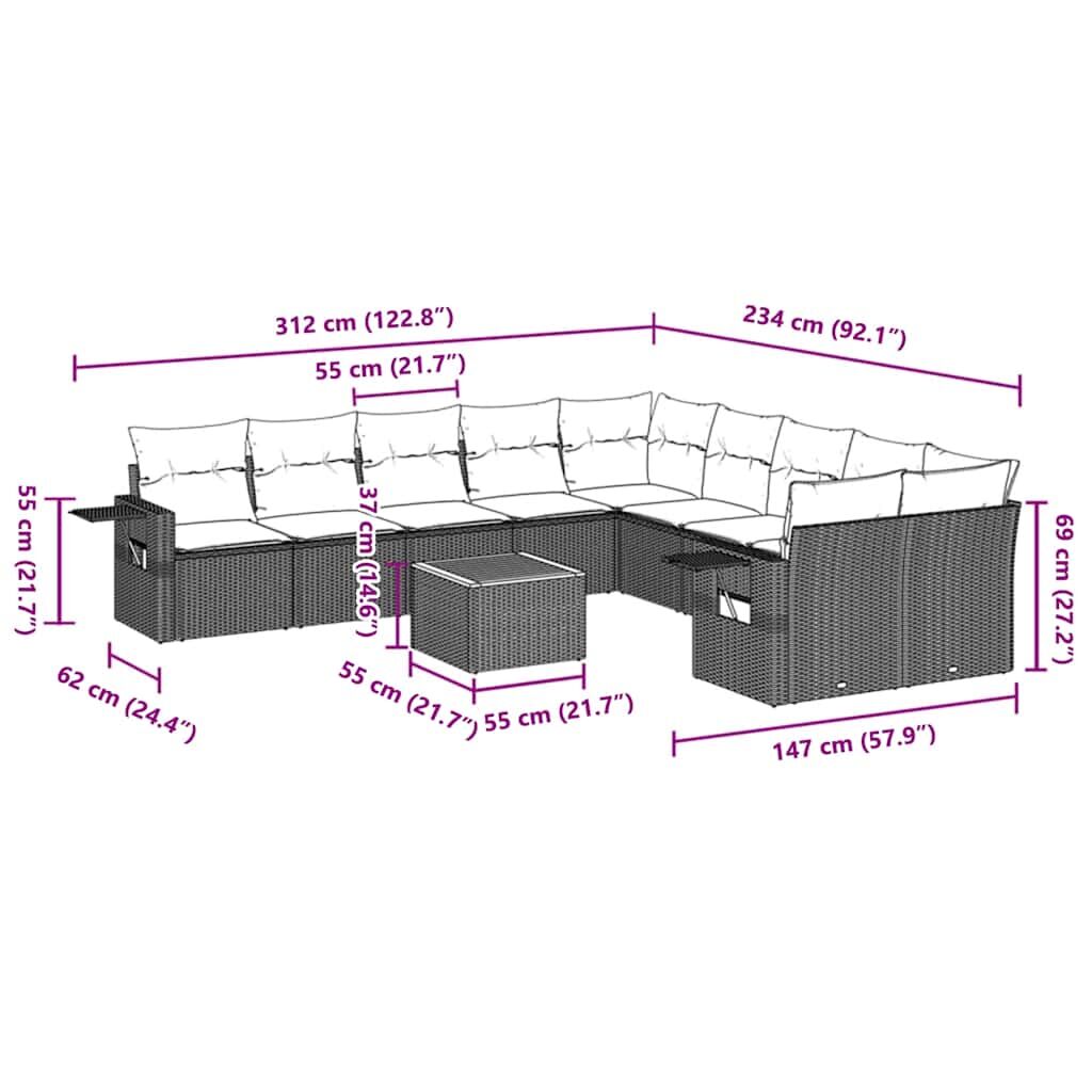 11 Piece Garden Sofa Set with Cushions Black Poly Rattan