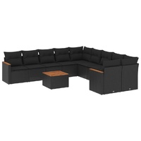 11 Piece Garden Sofa Set with Cushions Black Poly Rattan
