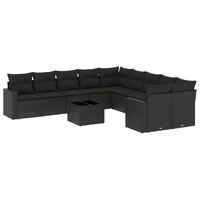 11 Piece Garden Sofa Set with Cushions Black Poly Rattan