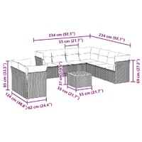 $843.29This garden sofa set is the perfect addition to your backyard, terrace, or patio, providing a comfortable and inviting space for chatting with family and friends or simply relaxing and enjoying the outdoors. Durable material: PE rattan, also known as poly rattan, is a strong, low-maintenance synthetic material that looks like natural rattan. It's lightweight, easy to clean, and commonly used for outdoor furniture due to its durability and weather-resistant properties.Storage function with water-resistant bag: Each garden seat features storage space under the seat, complete with a water-resistant bag for storing cushions, toys, and other items. The inner bags have a top cover and can be securely fastened to the seats with hook-and-loop fasteners for added stability.Stable and easy-to-clean tabletop: This garden table has an acacia wood top that is sturdy, durable, and easy to clean with a damp cloth.Removable and washable cover: These seat cushions feature removable covers for easy washing and maintenance.Modular design: This outdoor furniture set has a modular design, making it completely flexible and easy to move around, so you can create a customised outdoor furniture arrangement. Good to know:To make sure your outdoor furniture stays beautiful, we recommend protecting it with a waterproof cover.