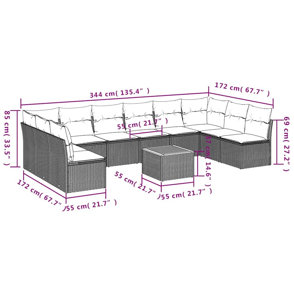 $851.39This garden sofa set is the perfect addition to your backyard, terrace, or patio, providing a comfortable and inviting space for chatting with family and friends or simply relaxing and enjoying the outdoors. Durable material: PE rattan, also known as poly rattan, is a strong, low-maintenance synthetic material that looks like natural rattan. It's lightweight, easy to clean, and commonly used for outdoor furniture due to its durability and weather-resistant properties.Storage function with water-resistant bag: Each garden seat features storage space under the seat, complete with a water-resistant bag for storing cushions, toys, and other items. The inner bags have a top cover and can be securely fastened to the seats with hook-and-loop fasteners for added stability.Stable and easy-to-clean tabletop: This garden table has an acacia wood top that is sturdy, durable, and easy to clean with a damp cloth.Removable and washable cover: These seat cushions feature removable covers for easy washing and maintenance.Modular design: This outdoor furniture set has a modular design, making it completely flexible and easy to move around, so you can create a customised outdoor furniture arrangement. Good to know:To make sure your outdoor furniture stays beautiful, we recommend protecting it with a waterproof cover.