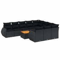 11 Piece Garden Sofa Set with Cushions Black Poly Rattan