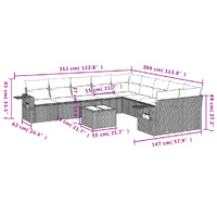 11 Piece Garden Sofa Set with Cushions Grey Poly Rattan