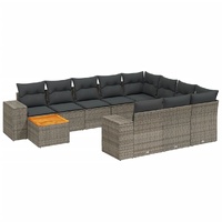 11 Piece Garden Sofa Set with Cushions Grey Poly Rattan