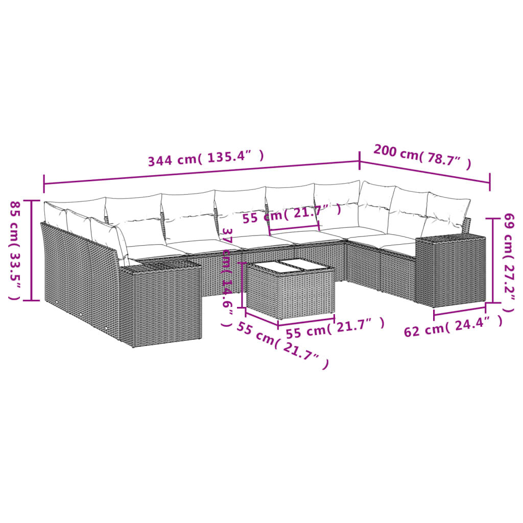 11 Piece Garden Sofa Set with Cushions Grey Poly Rattan