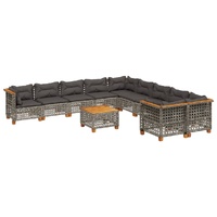 11 Piece Garden Sofa Set with Cushions Grey Poly Rattan
