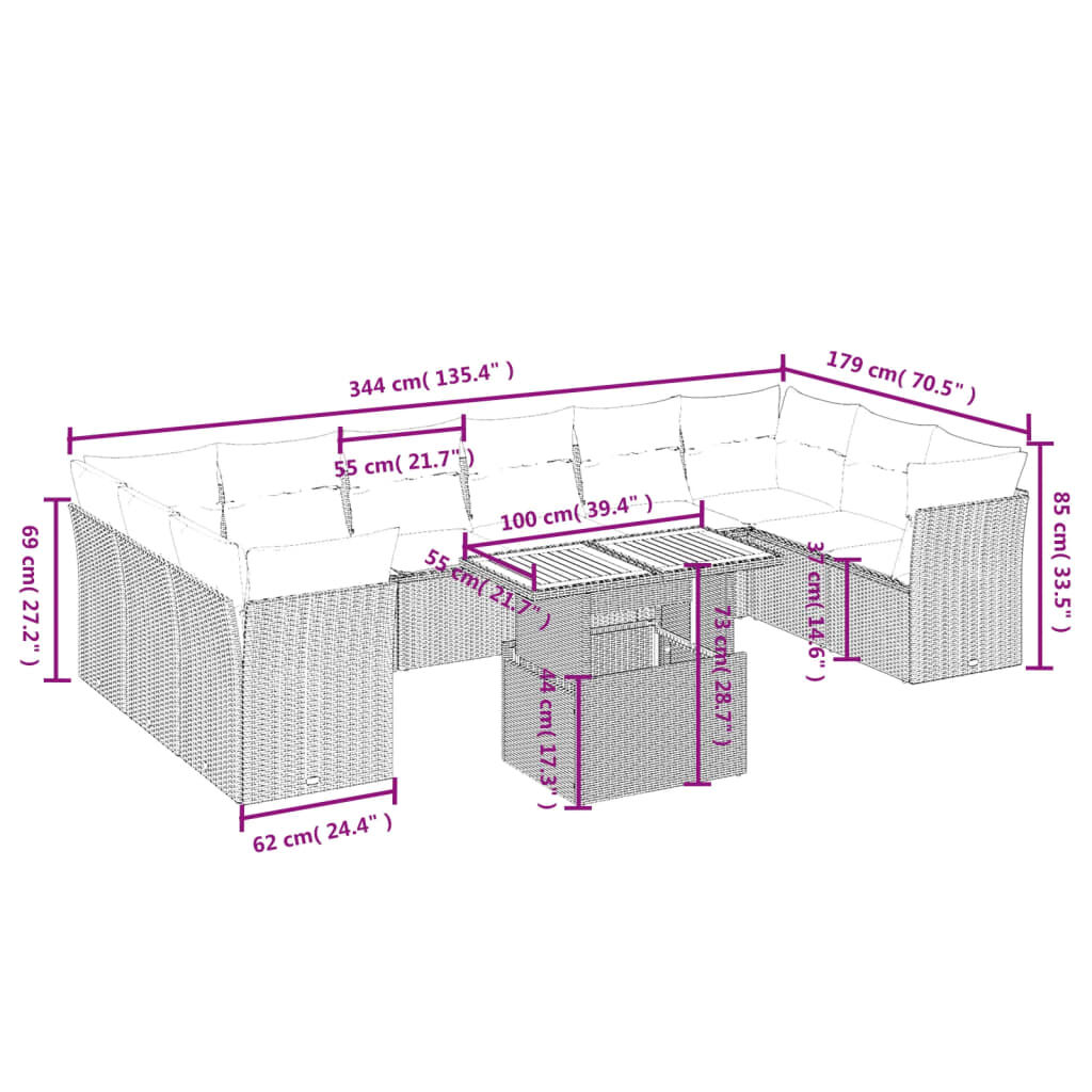 11 Piece Garden Sofa Set with Cushions Grey Poly Rattan