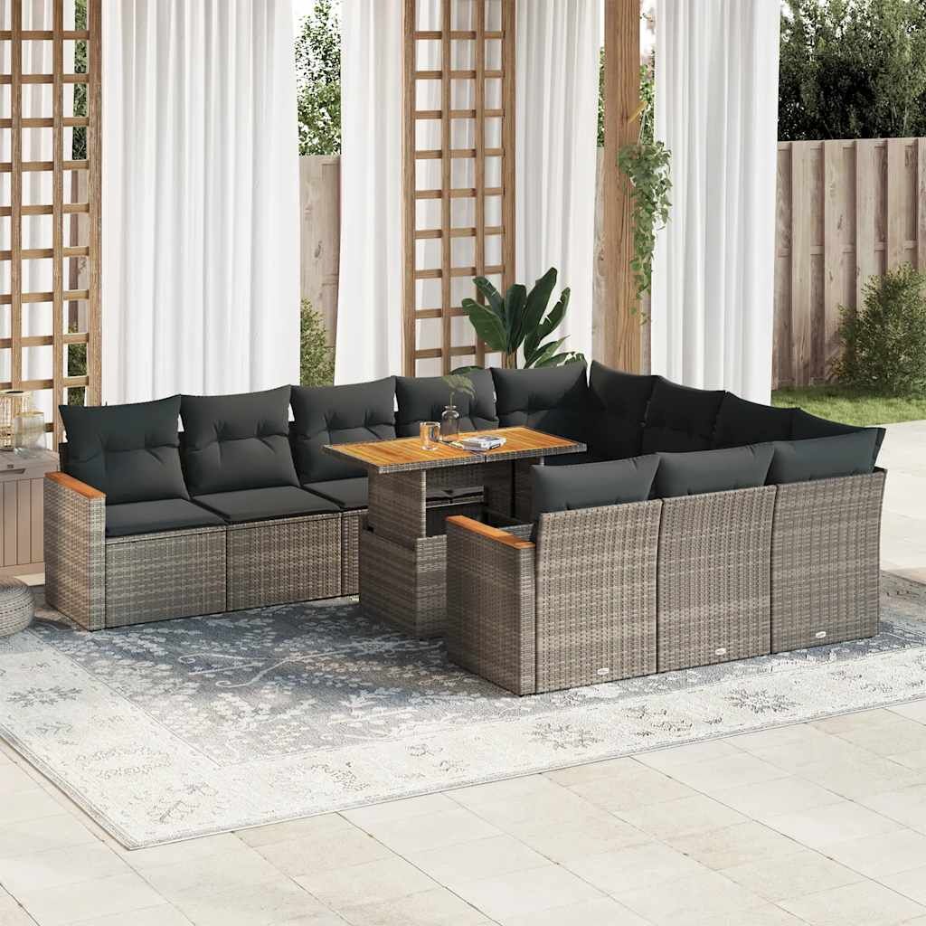 $1,043.09This garden sofa set is the perfect addition to your backyard, terrace, or patio, providing a comfortable and inviting space for chatting with family and friends or simply relaxing and enjoying the outdoors.Durable material: PE rattan, also known as poly rattan, is a strong, low-maintenance synthetic material that looks like natural rattan. It's lightweight, easy to clean, and commonly used for outdoor furniture due to its durability and weather-resistant properties.Storage function with water-resistant bag: Each garden seat features storage space under the seat, complete with a water-resistant bag for storing cushions, toys, and other items. The inner bags have a top cover and can be securely fastened to the seats with hook-and-loop fasteners for added stability.Removable and washable cover: These seat cushions feature removable covers for easy washing and maintenance.Modular design: This outdoor furniture set has a modular design, making it completely flexible and easy to move around, so you can create a customised outdoor furniture arrangement.Good to know:To make sure your outdoor furniture stays beautiful, we recommend protecting it with a waterproof cover.