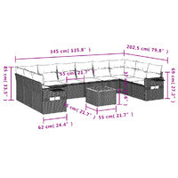 11 Piece Garden Sofa Set with Cushions Mix Beige Poly Rattan