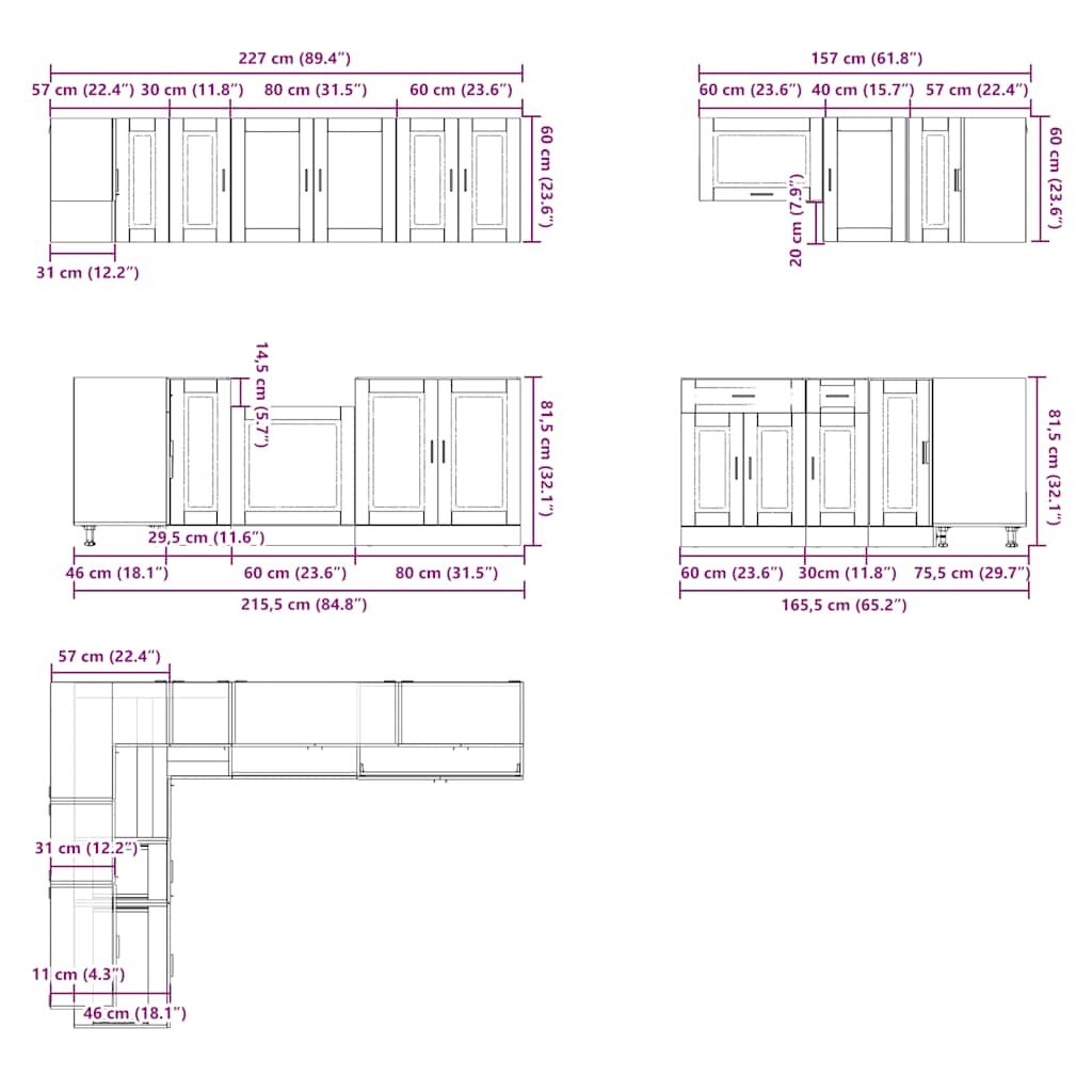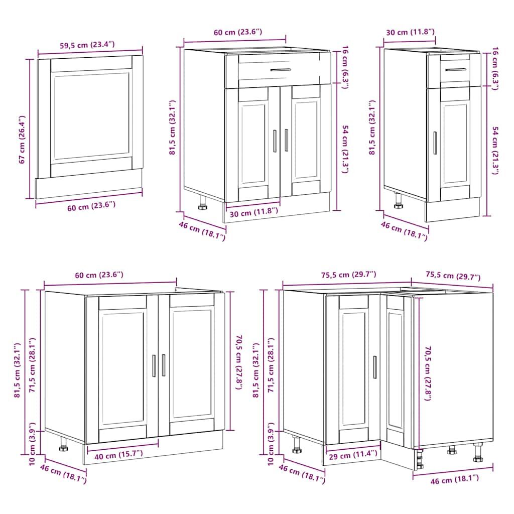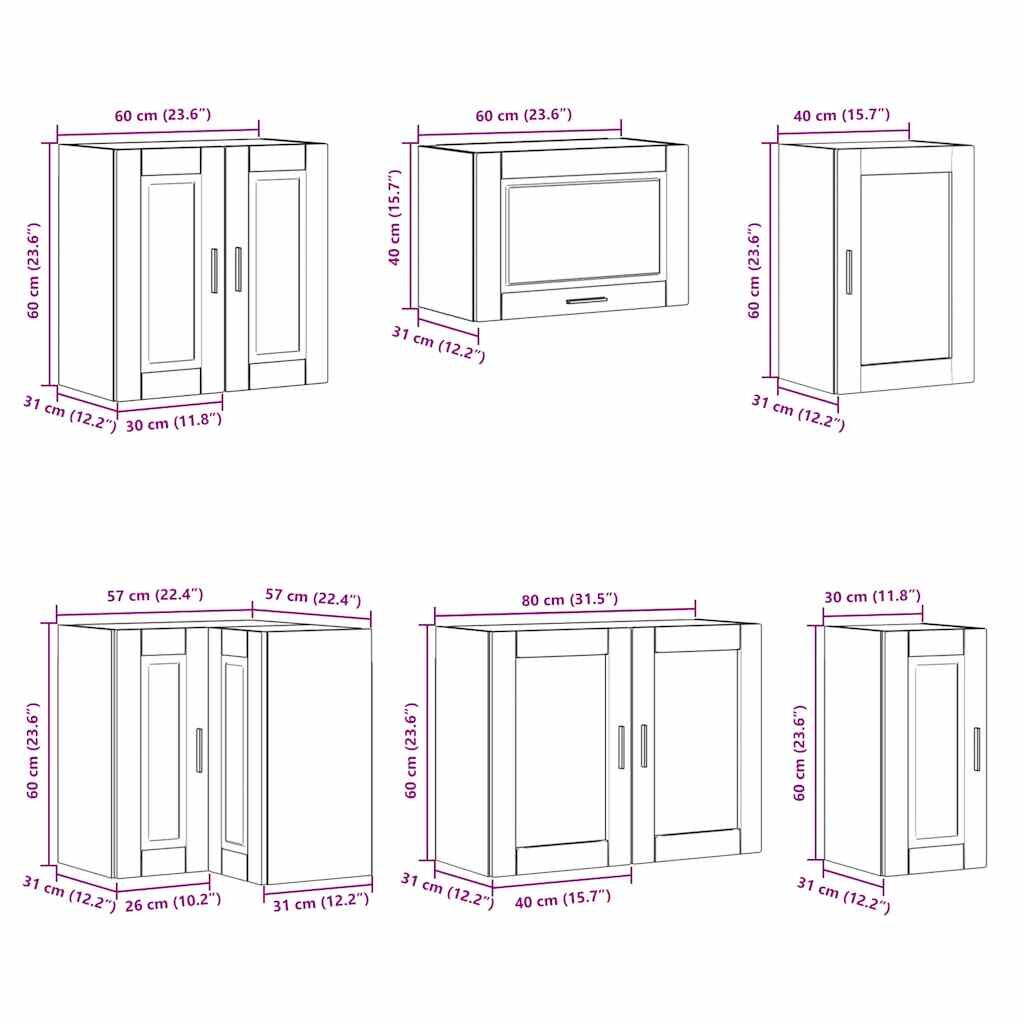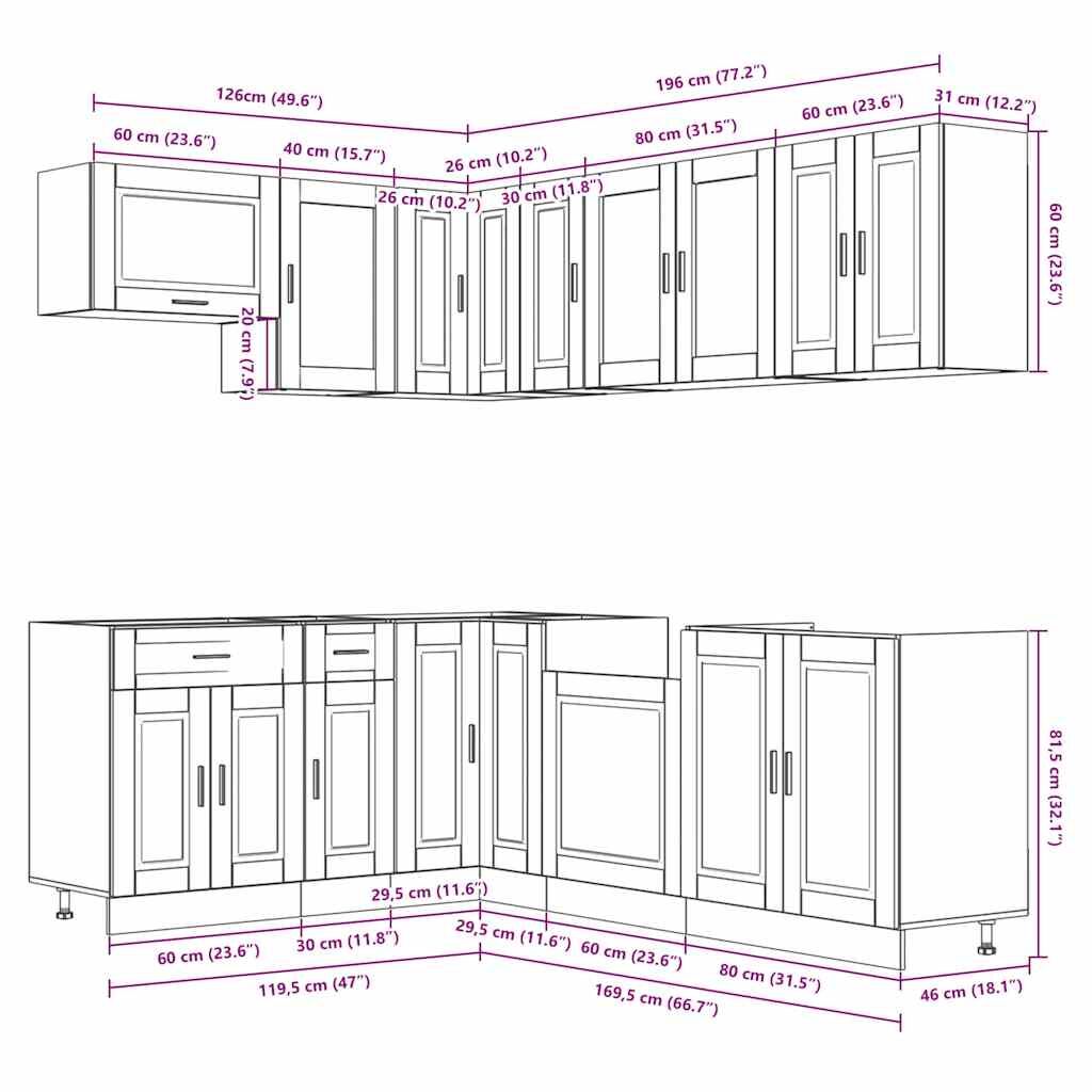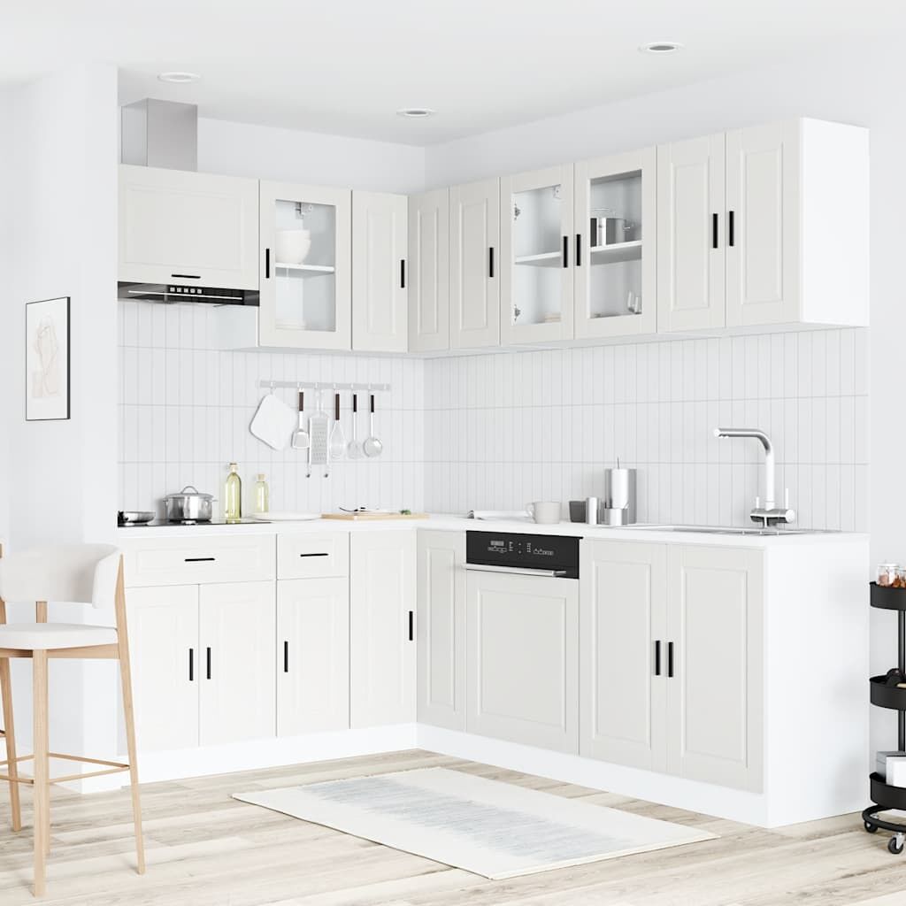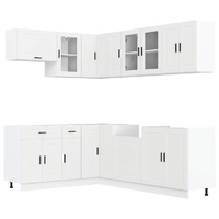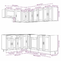 $1,388.69This 11-piece kitchen cabinet set, with its elegant design, optimises your kitchen space and provides ample storage space for your personal belongings! Stable and durable material: Engineered wood is a durable and stable material with a smooth surface that is resistant to moisture, warping, and splitting, making it a reliable choice for a variety of projects.Ample storage space: The kitchen cabinet set has many compartments, and offers sufficient space to store bowls, plates, pots, and other kitchen appliances.Adjustable feet: The bottom cabinets feature adjustable feet that can be adjusted in height to suit your kitchen layout.Easy to maintain: Thanks to its smooth surface, these kitchen cabinets are easy to clean with a damp cloth and require less maintenance. Warning:To prevent it from tipping over, this product must be used with the provided wall attachment device. Good to know:Screw(s) and plug(s) for inside the wall are not included. Seek and use screw(s) and plug(s) suitable for your walls. If you are uncertain, seek professional advice. Read and follow each step of the instruction carefully.The worktop, sink and faucet are not included in the delivery.