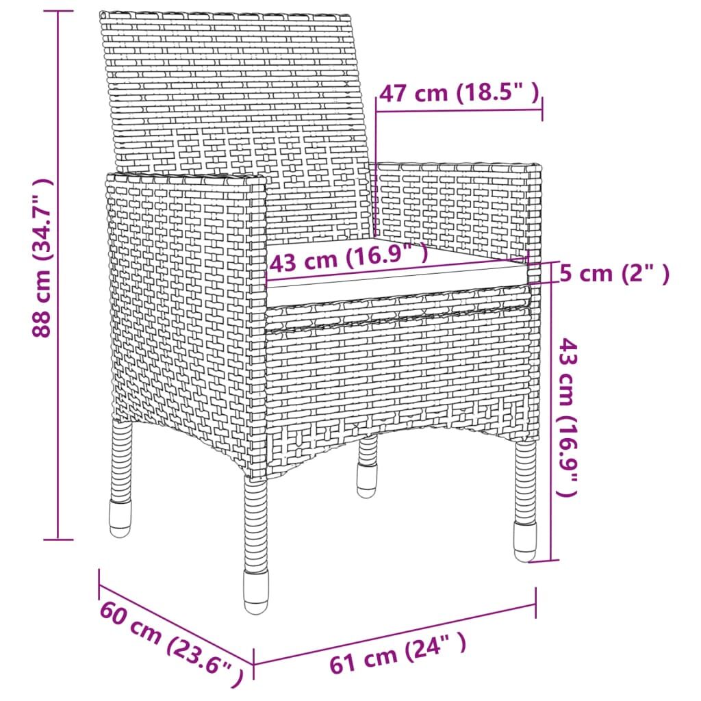With a stylish design and a durable steel frame, this dining furniture set is a perfect choice for your outdoor living space. This garden dining set features a powder-coated steel frame, which makes the table and chairs stable and durable. Thanks to the weather-resistant PE rattan, the outdoor furniture set is easy to clean. The cushions are removable that is easy to clean. Additionally, the thickly cushions add extra seating comfort. Note: In order to extend the life of your outdoor furniture, we recommend you to protect it with a waterproof cover.