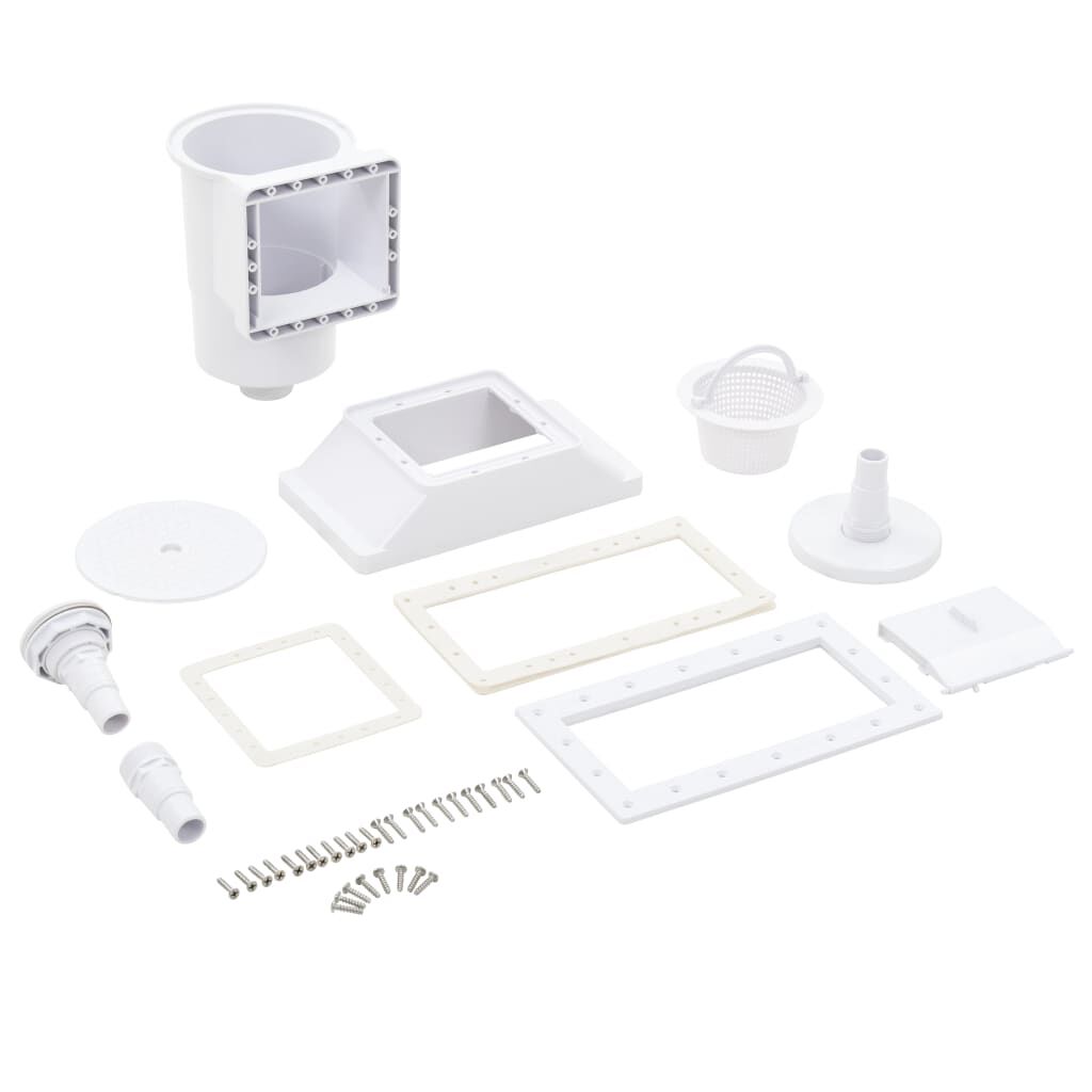 This wide-mouth pool skimmer is designed for varying above ground pool application. This pool cleaner is made of heavy-duty ABS, enabling it UV and weather resistant. The contoured body, combined with the weir and a basket, outfits superior skimming action that removes debris more efficiently and completely. Delivery includes 1 skimmer, 1 wide mouth, 1 skimmer weir, 1 skimmer cover, 1 inlet nozzle, 1 basket, 1 adaptor, 1 hose connection, 3 face plates and other mounting accessories.