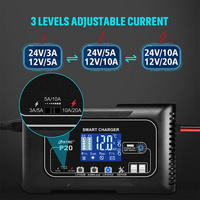 20-AMP QUICK CHARGER: 12V 20-Amp and 24V 10-Amp 7-stage quick battery charger, charging speed is much faster than 8-Amp or 5-Amp automatic chargers. Charge or repair all 12-volt and 24volt lead-acid or lithium-ion or LiFePO4 automotive, marine and deep-cycle batteries including AGM, GEL, SLA, Flooded in cars, trucks, SUVs, motorcycles, lawn mowers, boats, etc.