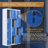 The unit has 12 individual locker compartments stacked in a 3 x 4 grid. Each locker provides ample space for personal items and can hold up to 30 kg. Built-in ventilations slits keep the stored items from smelling musty. Users may also customise their locker with a name tag or label in the designated slot provided. This comes comes with standard locks (with 2 keys each) to ensure safety of your belongings.