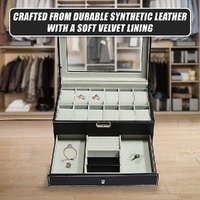 $62.97If you love your jewelleryand love to display itthis lovely 12-grid watch and jewellery box organiser from Randy Travis Machinery is the perfect choice for you. Crafted from durable synthetic leather with a soft velvet lining, this elegant box holds watches, rings, necklaces, bracelets, pins, and other jewellery in style.