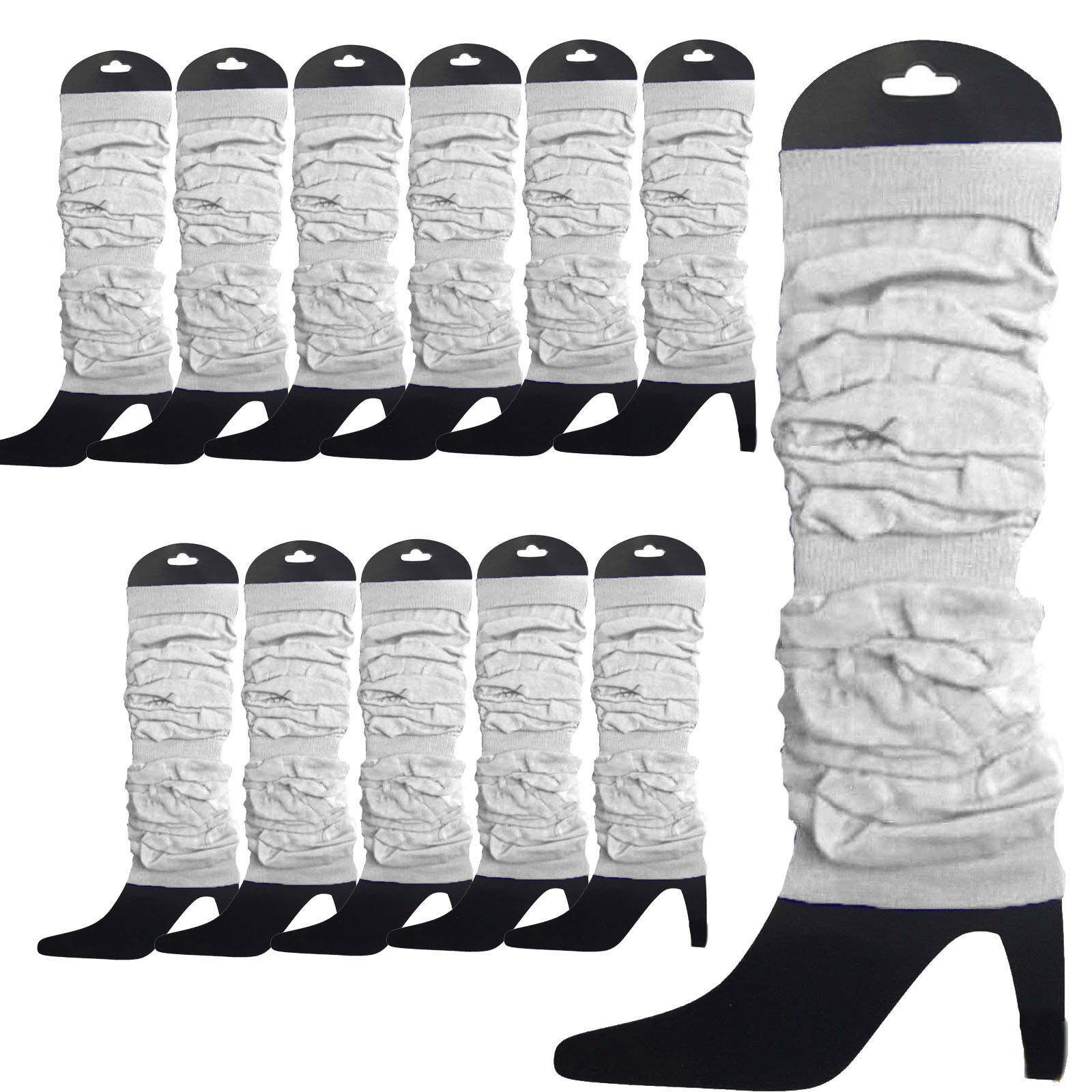 12 LEG WARMERS Knitted Womens Neon Party Knit Ankle Fluro Dance Costume 80s BULK - White