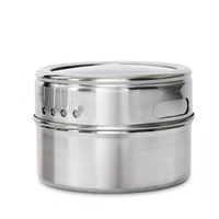 Spice up your cooking with this stainless steel spice jar rack set. The tins feature a shaker transparent lid and magnetic base, and come with a stainless steel plate, ready displayed on any kitchen benchtop. Fill the jars up with your favourite spices or teas for easy application and storage.