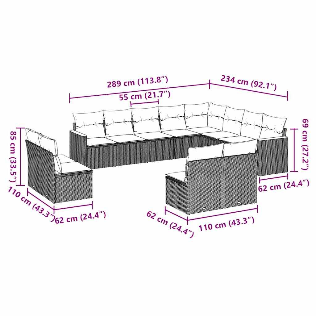 $957.85This garden sofa set is the perfect addition to your backyard, terrace, or patio, providing a comfortable and inviting space for chatting with family and friends or simply relaxing and enjoying the outdoors. Durable material: PE rattan, also known as poly rattan, is a strong, low-maintenance synthetic material that looks like natural rattan. It's lightweight, easy to clean, and commonly used for outdoor furniture due to its durability and weather-resistant properties.Storage function with water-resistant bag: The garden furniture features storage space under the seat, complete with a water-resistant bag for storing cushions, toys, and other items. The inner bag can be securely fastened to the outdoor furniture with hook-and-loop fasteners for added stability.Removable and washable cover: These seat cushions feature removable covers for easy washing and maintenance.Modular design: This outdoor furniture set has a modular design, making it completely flexible and easy to move around, so you can create a customised outdoor furniture arrangement. Good to know:To make sure your outdoor furniture stays beautiful, we recommend protecting it with a waterproof cover.