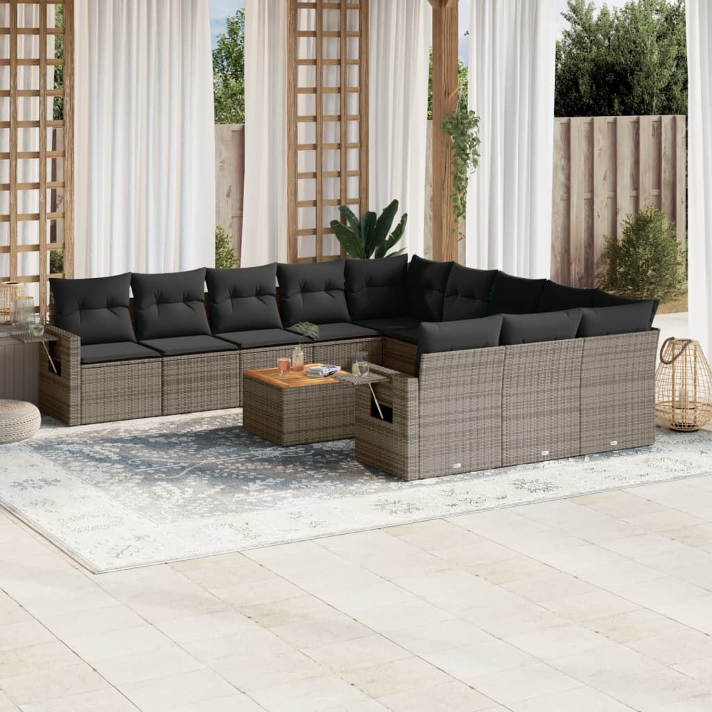 $1,112.95This garden sofa set is the perfect addition to your backyard, terrace, or patio, providing a comfortable and inviting space for chatting with family and friends or simply relaxing and enjoying the outdoors. Durable material: PE rattan, also known as poly rattan, is a strong, low-maintenance synthetic material that looks like natural rattan. It's lightweight, easy to clean, and commonly used for outdoor furniture due to its durability and weather-resistant properties.Convenient side table: This outdoor furniture features a foldable side table with a gas spring on the armrests, providing a convenient spot to keep your essentials within easy reach.Stable and easy-to-clean tabletop: This garden table has an acacia wood top that is sturdy, durable, and easy to clean with a damp cloth.Removable and washable cover: These seat cushions feature removable covers for easy washing and maintenance.Modular design: This outdoor furniture set has a modular design, making it completely flexible and easy to move around, so you can create a customised outdoor furniture arrangement. Good to know:To make sure your outdoor furniture stays beautiful, we recommend protecting it with a waterproof cover.