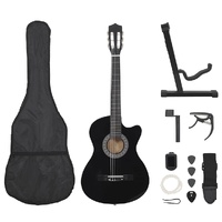 $108.89Our western cutaway guitar is a great instrument for beginners, amateurs and any level musicians. In addition to a guitar, the pack comes with a guitar bag, strap, picks, pick holder, guitar string set, string crank, capo, chromatic tuner and guitar holder. This guitar is made of solid basswood with 6 strings. The excellent sound quality and beautiful design make it very valuable. With a scale of 63 cm, this acoustic guitar has everything you need to become the next guitar player. The tuner can help tune the guitar strings better, while the capo can help to adjust the tone of the guitar. The 3 picks are used for plucking strings and can be put in the pick holder. It is usually a substitute for the fingers, but it can also be played with fingers together. The string crank, as a useful tool, makes the process of replacing strings easier. The included bag with a strap is perfect for traveling musicians and easy storage. Additionally, you can place your guitar in the guitar holder, which is very convenient. Our guitar set is easy to assemble.