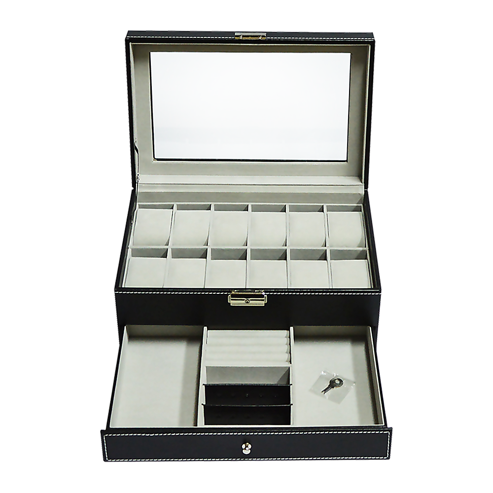 $77.0712 Slot PU Leather Lockable Watch and Jewelry Storage Boxes (Black)