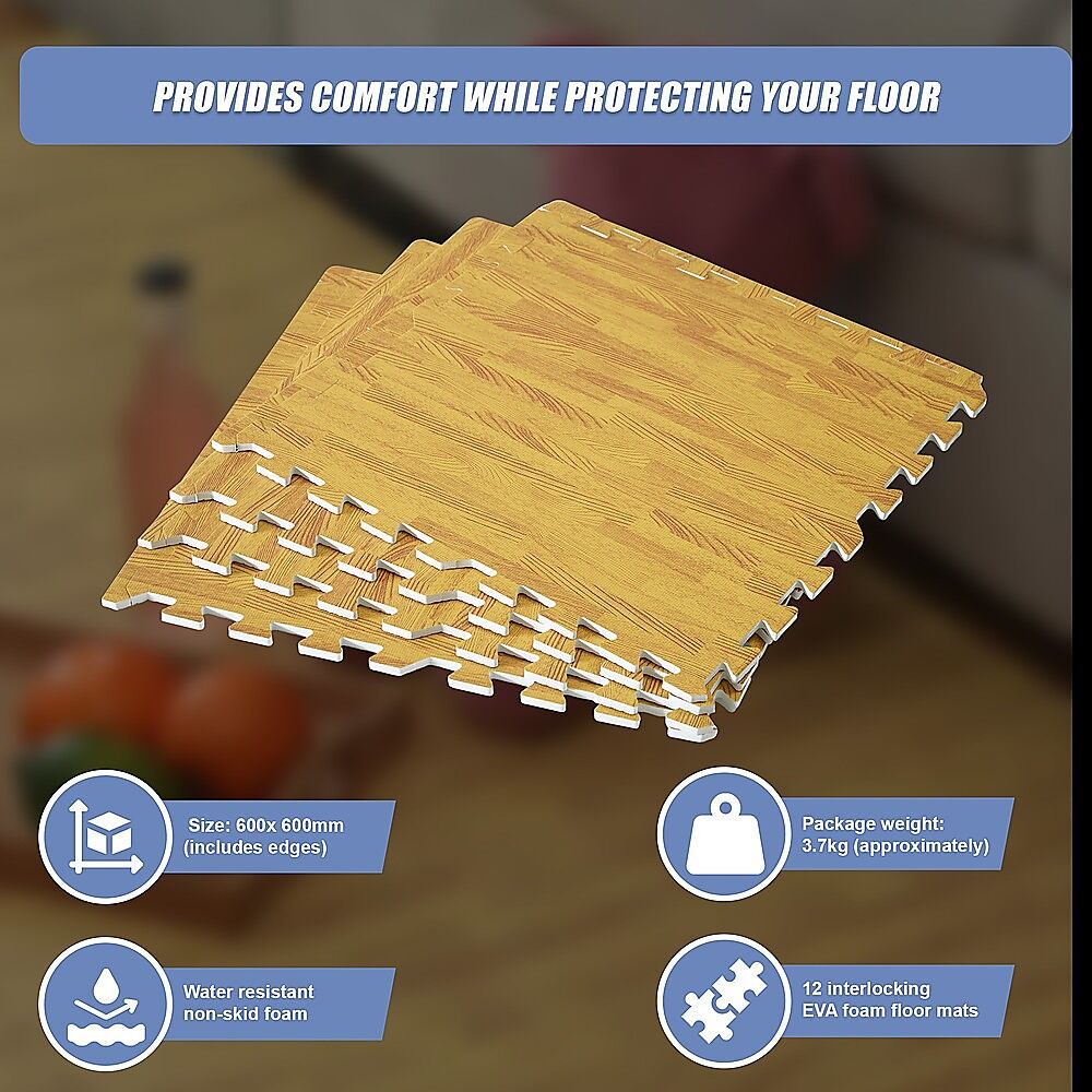 This tough and sturdy floor mat set has long-lasting durability. The floor mats are light in weight and easy to transport. You can instantly turn anywhere you go into your private gym or kids' playroom. Connected together the mats are generous in size, covering a 4.5m square area (approx). The interlocking mats allow you to link additional sets making your workout area as large as you need.