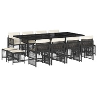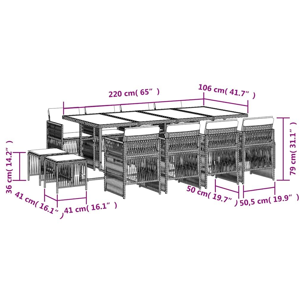 This garden dining set is a great choice for al fresco dining or just relaxing in the garden, backyard, or on the patio. Durable material: PE rattan, also known as poly rattan, is a strong, low-maintenance synthetic material that looks like natural rattan. It's lightweight, easy to clean, and commonly used for outdoor furniture due to its durability and weather-resistant properties.Compact storage: These chairs have a flap backrest that can be folded down, making it easy to store them under the table. When folded, they neatly fit under the table, forming a space-saving cube shape. Additionally, the stools can also be stored under the chairs, further maximizing space efficiency.Comfortable seat experience: This outdoor furniture, complete with thickly padded cushions, offers a comfortable seating experience.Removable and washable cover: These cushions feature removable covers for easy washing and maintenance. The cushion covers have a flap at the back for easy attachment to the backrests.Glass tabletop: The outdoor table's top is made from strong and durable tempered glass, making it easy to clean with a damp cloth and adding a touch of elegance to your outdoor space. Good to know: To make sure your outdoor furniture stays beautiful, we recommend protecting it with a waterproof cover.