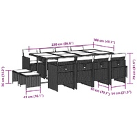This garden dining set is a great choice for al fresco dining or just relaxing in the garden, backyard, or on the patio. Durable material: PE rattan, also known as poly rattan, is a strong, low-maintenance synthetic material that looks like natural rattan. It's lightweight, easy to clean, and commonly used for outdoor furniture due to its durability and weather-resistant properties.Compact storage: These chairs have a flap backrest that can be folded down, making it easy to store them under the table. When folded, they neatly fit under the table, forming a space-saving cube shape. Additionally, the stools can also be stored under the chairs, further maximising space efficiency. Comfortable seat experience: This outdoor furniture, complete with thickly padded cushions, offers a comfortable seating experience.Removable and washable cover: These seat cushions feature removable covers for easy washing and maintenance.Glass tabletop: The outdoor table's top is made from strong and durable tempered glass, making it easy to clean with a damp cloth and adding a touch of elegance to your outdoor space. Good to know: To make sure your outdoor furniture stays beautiful, we recommend protecting it with a waterproof cover.
