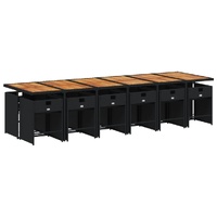 This garden dining set is a great choice for al fresco dining or just relaxing in the garden, backyard, or on the patio. Durable material: PE rattan, also known as poly rattan, is a strong, low-maintenance synthetic material that looks like natural rattan. It's lightweight, easy to clean, and commonly used for outdoor furniture due to its durability and weather-resistant properties.Compact storage: These chairs have a flap backrest that can be folded down, making it easy to store them under the table. When folded, they neatly fit under the table, forming a space-saving cube shape.Comfortable seat experience: This outdoor furniture, complete with thickly padded cushions, offers a comfortable seating experience.Removable and washable cover: These seat cushions feature removable covers for easy washing and maintenance. The chair cushion covers have a flap at the back for easy attachment to the chairs.Stable and easy-to-clean tabletop: This garden table has an acacia wood top that is sturdy, durable, and easy to clean with a damp cloth. Good to know: To make sure your outdoor furniture stays beautiful, we recommend protecting it with a waterproof cover.