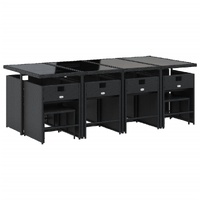 This garden dining set is a great choice for al fresco dining or just relaxing in the garden, backyard, or on the patio. Durable material: PE rattan, also known as poly rattan, is a strong, low-maintenance synthetic material that looks like natural rattan. It's lightweight, easy to clean, and commonly used for outdoor furniture due to its durability and weather-resistant properties.Compact storage: These chairs have a flap backrest that can be folded down, making it easy to store them under the table. When folded, they neatly fit under the table, forming a space-saving cube shape. Additionally, the stools can also be stored under the chairs, further maximizing space efficiency.Comfortable seat experience: This outdoor furniture, complete with thickly padded cushions, offers a comfortable seating experience.Removable and washable cover: These seat cushions feature removable covers for easy washing and maintenance. The chair cushion covers have a flap at the back for easy attachment to the chairs.Stable and easy-to-clean tabletop: This garden table has a tempered glass table top that is sturdy, durable, and easy to clean with a damp cloth. Good to know: To make sure your outdoor furniture stays beautiful, we recommend protecting it with a waterproof cover.