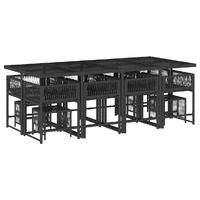 This garden dining set is a great choice for al fresco dining or just relaxing in the garden, backyard, or on the patio. Durable material: PE rattan, also known as poly rattan, is a strong, low-maintenance synthetic material that looks like natural rattan. It's lightweight, easy to clean, and commonly used for outdoor furniture due to its durability and weather-resistant properties.Compact storage: These chairs have a flap backrest that can be folded down, making it easy to store them under the table. When folded, they neatly fit under the table, forming a space-saving cube shape. Additionally, the stools can also be stored under the chairs, further maximizing space efficiency.Comfortable seat experience: This outdoor furniture, complete with thickly padded cushions, offers a comfortable seating experience.Removable and washable cover: These seat cushions feature removable covers for easy washing and maintenance. The cushion covers have a flap at the back for easy attachment to the backrests.Glass tabletop: The outdoor table's top is made from strong and durable tempered glass, making it easy to clean with a damp cloth and adding a touch of elegance to your outdoor space. Good to know:To make sure your outdoor furniture stays beautiful, we recommend protecting it with a waterproof cover.