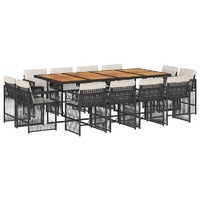 This garden dining set is a great choice for al fresco dining or just relaxing in the garden, backyard, or patio. Durable material: PE rattan, also known as poly rattan, is a strong, low-maintenance synthetic material that looks like natural rattan. It's lightweight, easy to clean, and commonly used for outdoor furniture due to its durability and weather-resistant properties.Compact storage: These chairs have a flap backrest that can be folded down, making it easy to store them under the table. When folded, they neatly fit under the table, forming a space-saving cube shape.Comfortable seat experience: This outdoor furniture, complete with thickly padded cushions, offers a comfortable seating experience.Removable and washable cover: These seat cushions feature removable covers for easy washing and maintenance. The cushion covers have a flap at the back for easy attachment to the backrests.Stable and easy-to-clean tabletop: This garden table has an acacia wood top that is sturdy, durable, and easy to clean with a damp cloth. Good to know:To make sure your outdoor furniture stays beautiful, we recommend protecting it with a waterproof cover.