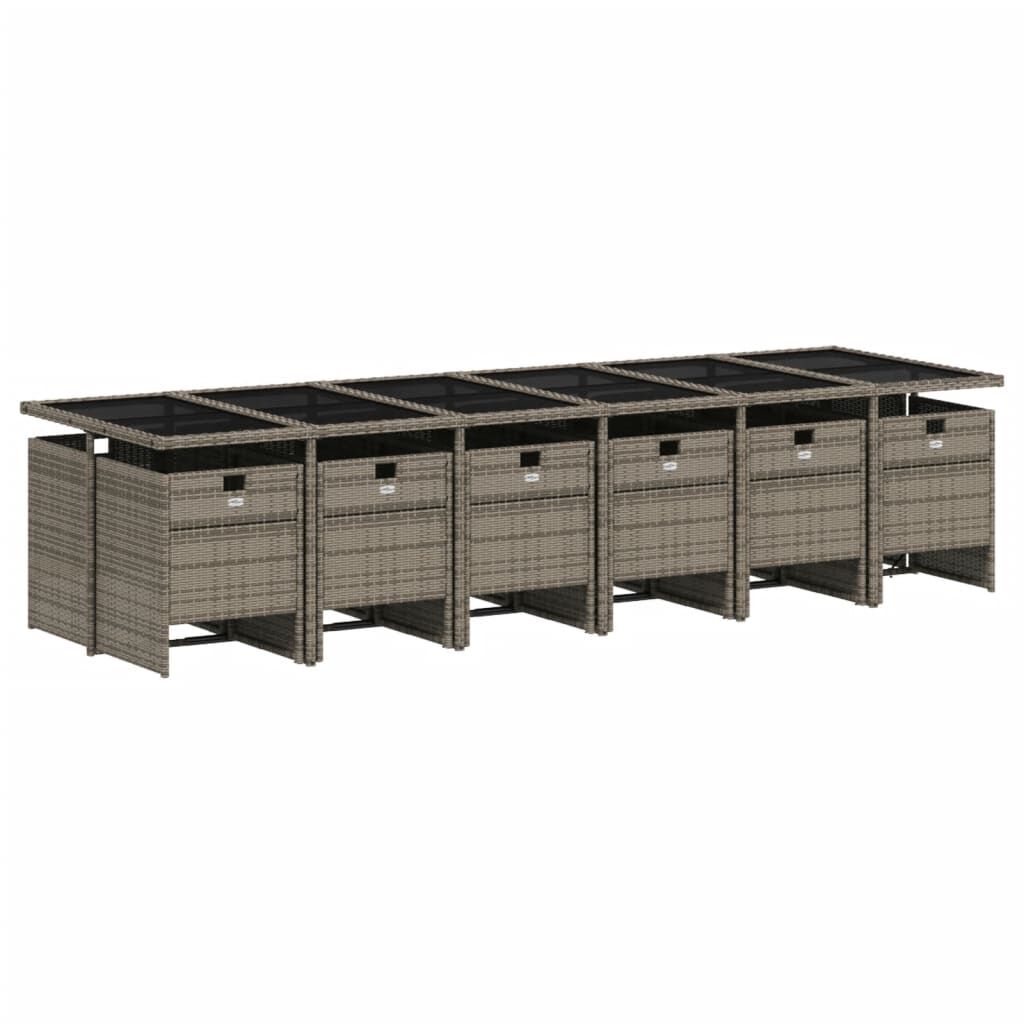 This garden dining set is a great choice for al fresco dining or just relaxing in the garden, backyard, or on the patio. Durable material: PE rattan, also known as poly rattan, is a strong, low-maintenance synthetic material that looks like natural rattan. It's lightweight, easy to clean, and commonly used for outdoor furniture due to its durability and weather-resistant properties.Compact storage: These chairs have a flap backrest that can be folded down, making it easy to store them under the table. When folded, they neatly fit under the table, forming a space-saving cube shape. Comfortable seat experience: This outdoor furniture, complete with thickly padded cushions, offers a comfortable seating experience.Removable and washable cover: These seat cushions feature removable covers for easy washing and maintenance.Glass tabletop: The outdoor table's top is made from strong and durable tempered glass, making it easy to clean with a damp cloth and adding a touch of elegance to your outdoor space. Good to know: To make sure your outdoor furniture stays beautiful, we recommend protecting it with a waterproof cover.