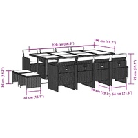 This garden dining set is a great choice for al fresco dining or just relaxing in the garden, backyard, or on the patio. Durable material: PE rattan, also known as poly rattan, is a strong, low-maintenance synthetic material that looks like natural rattan. It's lightweight, easy to clean, and commonly used for outdoor furniture due to its durability and weather-resistant properties.Compact storage: These chairs have a flap backrest that can be folded down, making it easy to store them under the table. When folded, they neatly fit under the table, forming a space-saving cube shape. Additionally, the stools can also be stored under the chairs, further maximising space efficiency. Comfortable seat experience: This outdoor furniture, complete with thickly padded cushions, offers a comfortable seating experience.Removable and washable cover: These seat cushions feature removable covers for easy washing and maintenance.Stable and easy-to-clean tabletop: This garden table has an acacia wood top that is sturdy, durable, and easy to clean with a damp cloth. Good to know: To make sure your outdoor furniture stays beautiful, we recommend protecting it with a waterproof cover.