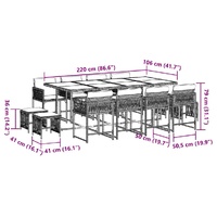 This garden dining set is a great choice for al fresco dining or just relaxing in the garden, backyard, or on the patio. Durable material: PE rattan, also known as poly rattan, is a strong, low-maintenance synthetic material that looks like natural rattan. It's lightweight, easy to clean, and commonly used for outdoor furniture due to its durability and weather-resistant properties.Compact storage: These chairs have a flap backrest that can be folded down, making it easy to store them under the table. When folded, they neatly fit under the table, forming a space-saving cube shape. Additionally, the stools can also be stored under the chairs, further maximizing space efficiency.Comfortable seat experience: This outdoor furniture, complete with thickly padded cushions, offers a comfortable seating experience.Removable and washable cover: These seat cushions feature removable covers for easy washing and maintenance. The cushion covers have a flap at the back for easy attachment to the backrests.Glass tabletop: The outdoor table's top is made from strong and durable tempered glass, making it easy to clean with a damp cloth and adding a touch of elegance to your outdoor space. Good to know:To make sure your outdoor furniture stays beautiful, we recommend protecting it with a waterproof cover.
