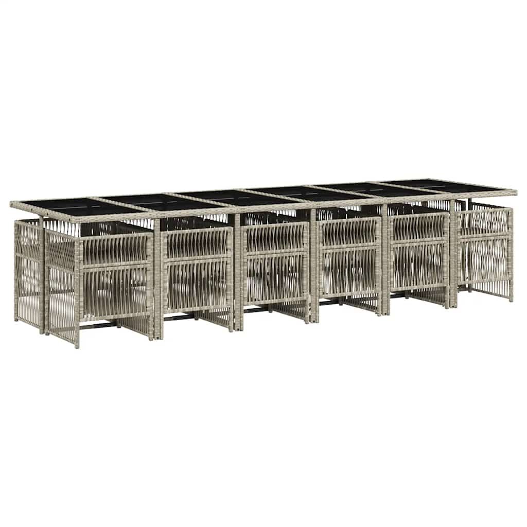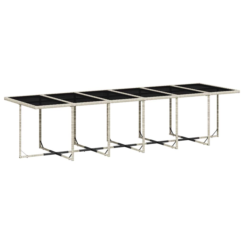 This garden dining set is a great choice for al fresco dining or just relaxing in the garden, backyard, or on the patio. Durable material: PE rattan, also known as poly rattan, is a strong, low-maintenance synthetic material that looks like natural rattan. It's lightweight, easy to clean, and commonly used for outdoor furniture due to its durability and weather-resistant properties.Compact storage: These chairs have a flap backrest that can be folded down, making it easy to store them under the table. When folded, they neatly fit under the table, forming a space-saving cube shape.Comfortable seat experience: This outdoor furniture, complete with thickly padded cushions, offers a comfortable seating experience.Removable and washable cover: These cushions feature removable covers for easy washing and maintenance. The cushion covers have a flap at the back for easy attachment to the backrests.Glass tabletop: The outdoor table's top is made from strong and durable tempered glass, making it easy to clean with a damp cloth and adding a touch of elegance to your outdoor space. Good to know: To make sure your outdoor furniture stays beautiful, we recommend protecting it with a waterproof cover.