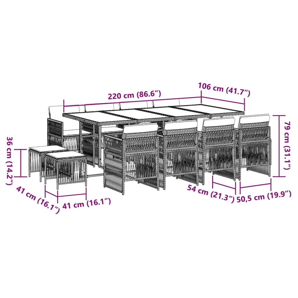 This garden dining set is a great choice for al fresco dining or just relaxing in the garden, backyard, or on the patio. Durable material: PE rattan, also known as poly rattan, is a strong, low-maintenance synthetic material that looks like natural rattan. It's lightweight, easy to clean, and commonly used for outdoor furniture due to its durability and weather-resistant properties.Compact storage: These chairs have a flap backrest that can be folded down, making it easy to store them under the table. When folded, they neatly fit under the table, forming a space-saving cube shape. Additionally, the stools can also be stored under the chairs, further maximizing space efficiency.Comfortable seat experience: This outdoor furniture, complete with thickly padded cushions, offers a comfortable seating experience.Removable and washable cover: These cushions feature removable covers for easy washing and maintenance. The cushion covers have a flap at the back for easy attachment to the backrests.Glass tabletop: The outdoor table's top is made from strong and durable tempered glass, making it easy to clean with a damp cloth and adding a touch of elegance to your outdoor space. Good to know: To make sure your outdoor furniture stays beautiful, we recommend protecting it with a waterproof cover.